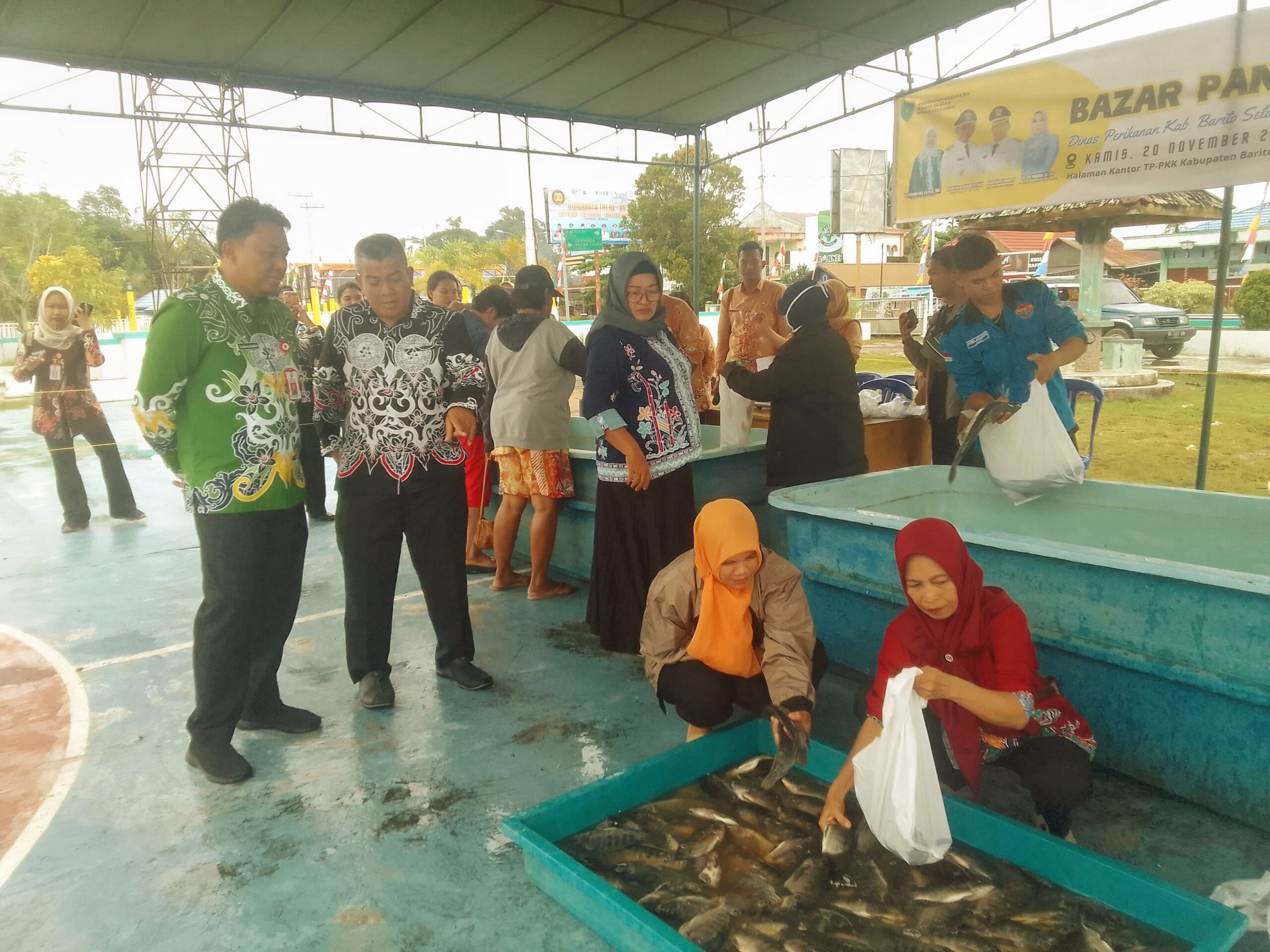 Kegiatan itu dilaksanakan di halaman kantor PKK Kabupaten Barito Selatan, Kamis 20 November 2025. Bazar murah tersebut menjual ikan patin seharga Rp25.000 per kg dan ikan nila seharga Rp35.000 per kg.