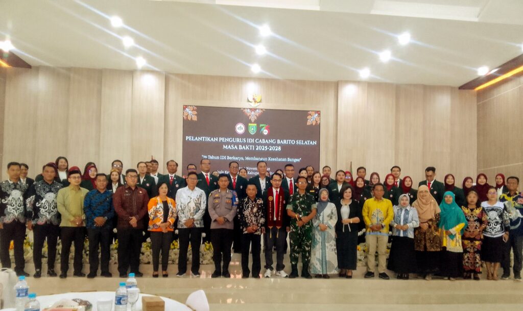 dr. Dadang Baskoro Nugroho, SpPD FINASIM melantik pengurus Ikatan Dokter Indonesia Cabang Barito Selatan, Sabtu 1 November 2025 di Aula Kantor Bupati Barito Selatan. Hadir dalam pelantikan tersebut Bupati Barito Selatan H. Eddy Raya Samsuri diwakili Asisten I Setda Barito Selatan Rahmat Nuryadin, Dandim 1012 Buntok Letkol Inf. Muhammad Edi dan yang mewakili forkopimda Kabupaten Barito Selatan dan undangan lainnya.