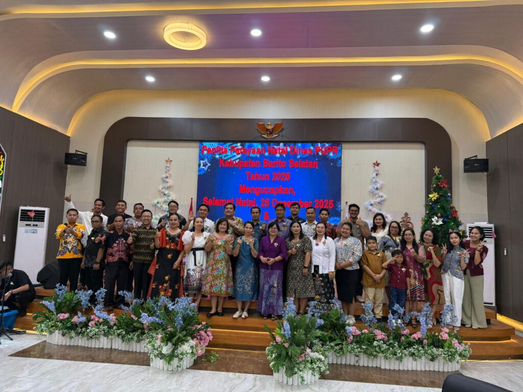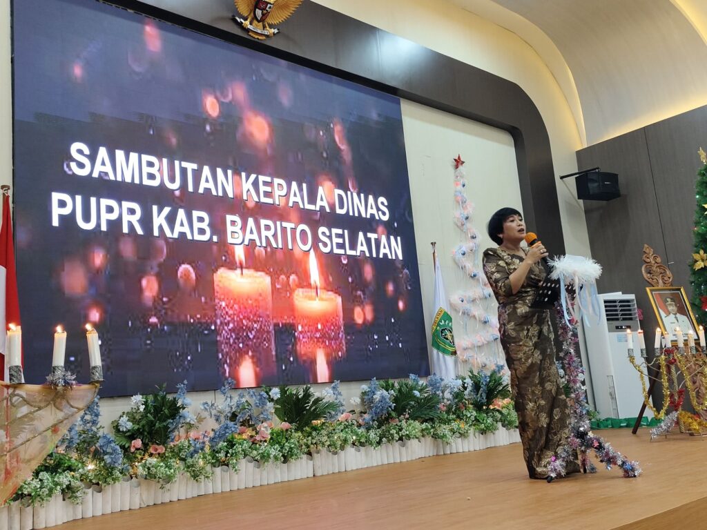 Buntok BarselOne,-Dinas Pekerjaan Umum dan Penataan Ruang (DPUPR) Kabupaten Barito Selatan menggelar perayaan ibadah Natal tahun 2025 di Aula DPUPR Barsel. Acara ini dihadiri oleh ratusan undangan, termasuk kepala Satuan Organisasi Perangkat Daerah (SOPD) dan pensiunan pegawai DPUPR Barsel.