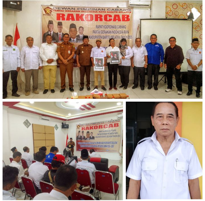Buntok – Dewan Pimpinan Cabang (DPC) Partai Gerakan Indonesia Raya (Gerindra) Kabupaten Barito Selatan menggelar Konsolidasi dan Rapat Koordinasi Cabang (Rakorcab) di Aula Hotel Lutfan Buntok, Senin 8 Desember 2025. Kegiatan tersebut dibuka secara resmi oleh Wakil Bupati Kabupaten Barito Selatan Khristianto Yudha. Dihadiri juga oleh Ketua KPU Kabupaten Barito Selatan Roslina, Kepala Kesbangpol Barito Selatan, Edi Suharto, perwakilan parpol, juga Ketua Partai Gerindra Kabupaten Barito Selatan H. Achmad Rasyid, SE.