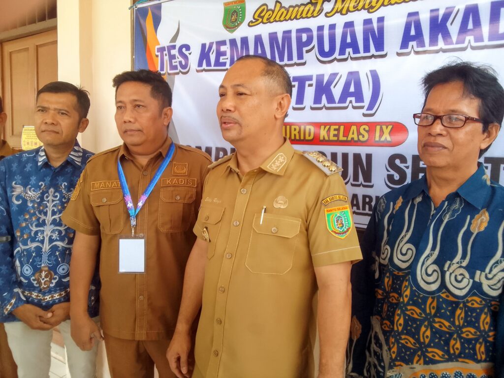 Buntok – Bupati Barito Selatan H. Eddy Raya Samsurididampingi Kadis Pendidikan Barsel Manat Simanjuntak, Asisten I Rahmat Nuryadin dan Asisten III Eko Hermansyah Sekda Barsel, dan sejumlah pejabat lainnya serta Ketua Dewan Pendidikan Dedy, melakukan pemantauan pelaksanaan Tes Kemampuan Akademik (ΤΚΑ) jenjang SMP Tahun 2026 di beberapa sekolah yakni SMPN 1 Dusun Selatan, SMPN 2 Dusun Selatan, SMP Muhammadyah Buntok, SMP IT Baiturrahman Buntok, Senin 6 April 2026.