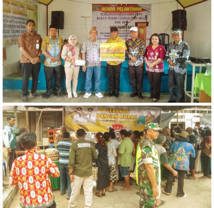Buntok – Wakil Bupati Barsel Khristianto Yudha Penyerahan Bantuan Bibit Ternak dan Gerakan Pangan Murah di Desa Ugang Sayu Kecamatan Gunung Bintang Awai, Barsel, Kamis 27 November 2025. Kegian itu sekaligus Pelantikan PAW anggota BPD Desa Ugang Sayu.